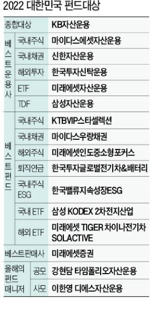 KB자산운용이 '2022 대한민국 펀드대상' 종합대상의 영예를 차지했다.