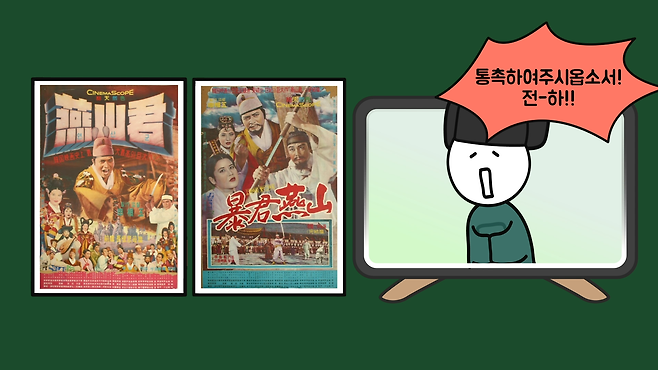 그리고 재밌는 사실을 발견했는데, 왕조시대를 배경으로 제작한 옛날 영화를 보면 이러한 표현들을 사용하지 않았다는 겁니다. 대표적으로 1961년에 개봉한 [연산군 : 장한사모편]이라는 영화가 있습니다.