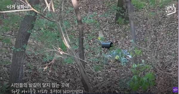 한참을 헤맨 끝에 다섯 아이들의 유골이 발견된 현장을 찾을 수 있었는데, 추모제를 지냈던 흔적이 남아있었습니다.
