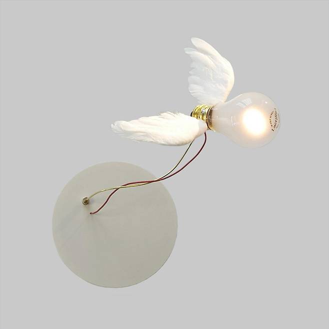 잉고 마우러의 시그니처 조명으로 꼽히는 루첼리노 조명. 일명 천사의 날개로 불리며, 알전구에 깃털을 달아 새 모양을 형상화했다. 지지대와 전선을 별개로 디자인하여 마치 새가 날고 있는 것처럼 보인다. 테이블 램프와 천장, 벽 조명 등 다양한 형태로 만들어졌다.