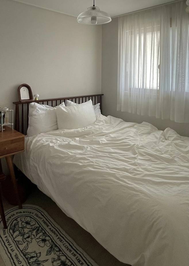 침실은 편안하고 차분한 휴양지 느낌을 내고 싶었어요. 그래서 라탄 인테리어도 고민했는데 조금 더 오래 유지할 수 있는 우드톤 인테리어로 타협했답니다!