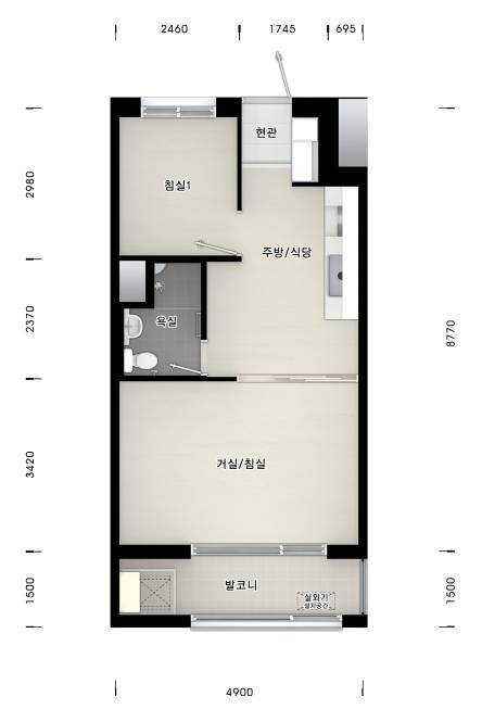 lh의 임대주택은 거의 비슷한 구조로 이루어져 있더라고요. 저는 37형에 당첨이 되었어요. 37형은 총 11평 정도의 공간이고 거실, 주방, 작은방, 화장실로 구성이 되어있습니다.