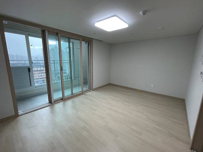 먼저 저희 집 메인 공간인 거실을 보여드릴게요. 사실 하자 점검 때 처음 집에 들어와서 가장 놀랐던 게 바로 바닥이었어요.. 당연히 마루까지는 기대하지 않았지만 설마 장판을 쓸 줄은 몰랐거든요. 장판이 뒤덮은 바닥을 어떻게든 가려야겠다고 생각했어요. 바닥 공사를 하기에는 오래 살 집도 아니고, 나갈 때 원상복구를 해야 한다는 게 부담되었어요.