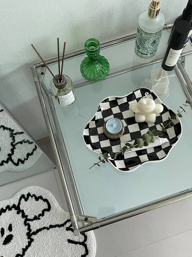 모듈 선반 위에는 여러 가지 소품을 올려두었는데 아직은 제 마음에 쏙 들지는 않아요. ㅎㅎ 조금씩 제 취향에 맞는 물건들을 모아볼 생각입니다. 소품을 바꿔가는 재미도 있을 것 같아요!