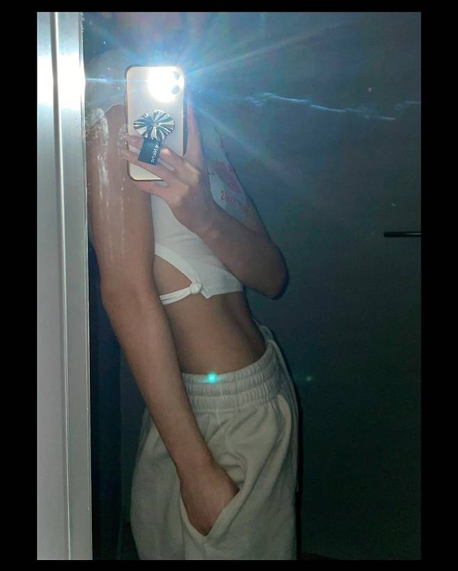 사진 속에는 거울에 비친 자신의 모습을 촬영 중인 유아의 모습이 담겨있다. 티셔츠에 트레이닝 팬츠를 착용한 네추럴한 스타일을 선보이고 있는 유아. 살짝 보이는 매혹적인 눈빛이 유아만의 매력을 더욱 돋보이게 만들었다.