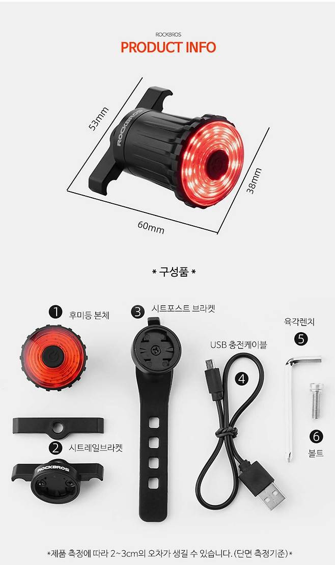 락브로스 WR5 후미등 브레이크센서 감광반응 6가지조명모드 100루멘 더 길어진 배터리 수명 야간 주행 필수 아이템 입니다!!