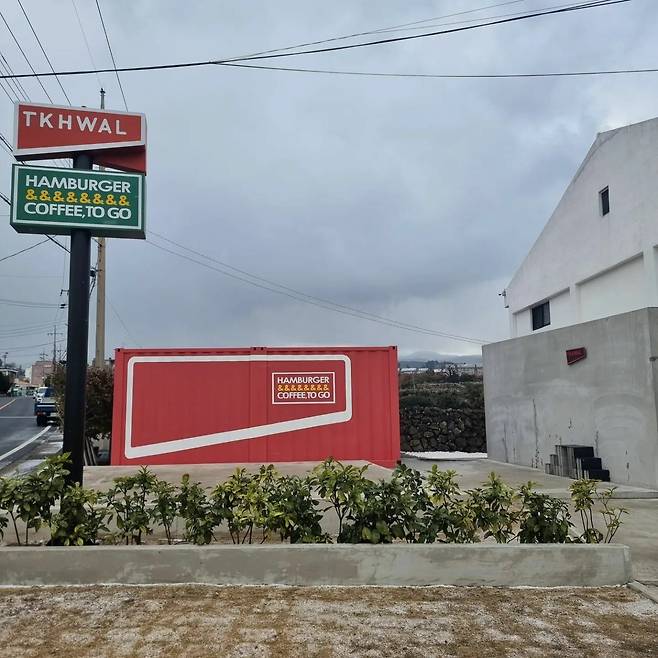 [식신TIP] 귤창고를 개조한 힙한 감성의 카페. 빨간색의 컨테이너박스에서는 수제 미니 햄버거를 판매해요. 오트밀밀크와 코코넛크림을 넣은 ‘특활라떼’가 시그니처랍니다.