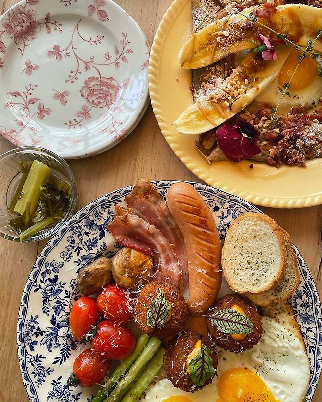 [식신TIP] 꽃과 우아한 소품으로 유럽의 카페에 와 있는 듯한 인테리어가 특징이에요. 꽃과 커피, 와인, 브런치를 즐길 수 있어요.