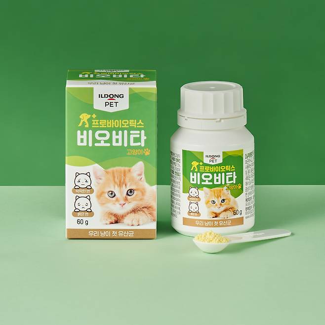 ‘비오비~타~!’ 한 번쯤은 들어보셨죠? 무려 60년간 유산균을 만들어온 일동제약에서 강아지, 고양이를 위한 유산균을 출시했어요. 유산균에 대한 오랜 노하우를 담은 것은 물론이고 좋은 원료를 사용해서 믿고 먹일 수 있는 유산균이에요. 또, 깨끗한 제조 시설에서 만들어 안심할 수 있답니다.