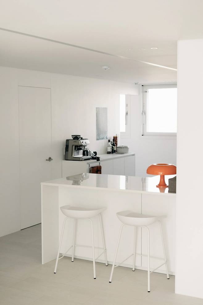 주방은 ㄴ자 아일랜드로 만들었어요. 여기서 간단하게 아침도 먹고, 재택 근무 시 컴퓨터를 하기도 해요. 지금 와서 보니 여기저기 많이 앉을 수 있는 곳을 만드는 것이 콘셉트였나 싶은데요. 집을 작게 쪼개셔 여기저기 다른 식으로 쓸 수 있는 공간으로 만들어 두다보니 만족도가 올라가는 것 같아요.