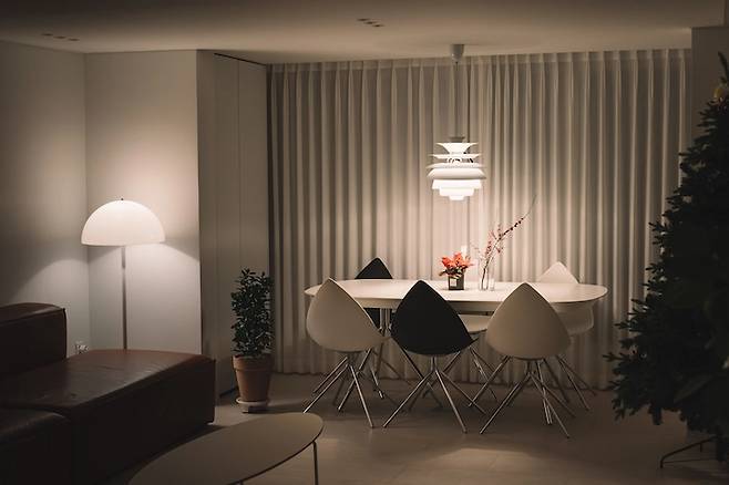 집에 들어서자마자 가장 시야를 집중 시키는 곳. 저희 집 식탁입니다. 확장 부 영역에 통으로 185cm/250cm의 보컨셉 오타와 식탁을 두었어요. 요리를 자주 하고, 손님을 부르고, 일도 할 수 있는 공간으로 만들고 싶어서 확장부에는 식탁을 두자는 생각을 많이 했습니다.