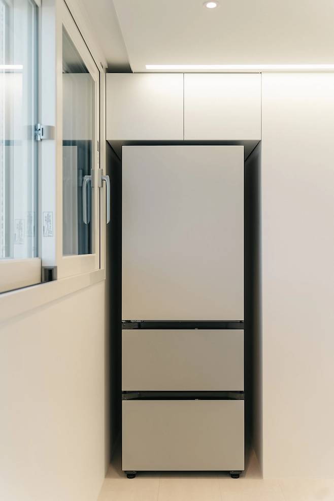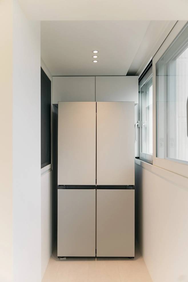 냉장고는 원래 쓰던 것을 이 집에서 쓸 수 없어서, 결국 새로 샀어요. 새로 산 김에 비스포크 코타 화이트, 코타 베이지로 두었습니다. 질감과 색감이 저희 집이랑 찰떡같이 맞아서 대만족이에요.