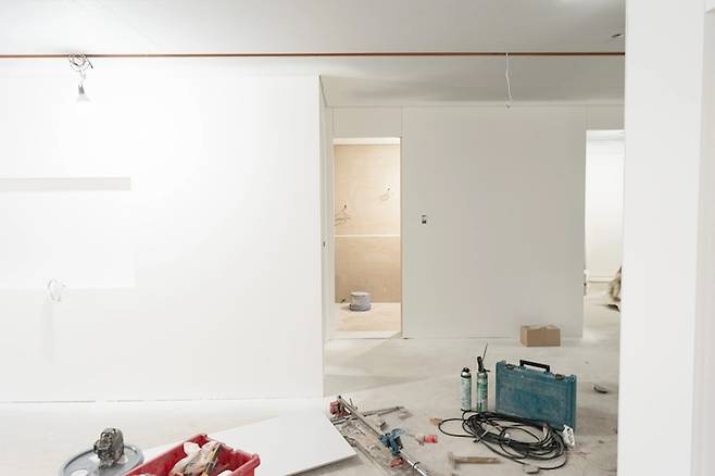 계획을 모두 짜고 본격적으로 시공에 들어갔습니다. 한창 인기 있던 무몰딩/무걸레받이/무문선을 하고 싶어서 전체 목공 작업을 진행했구요. 공사 총 기간은 6주 정도 소요되었지만 계속 자잘한 부분들은 수정을 하면서 살고 있어요. 그럼 완성되어 살고 있는 지금 저희 집을 보여드릴께요.