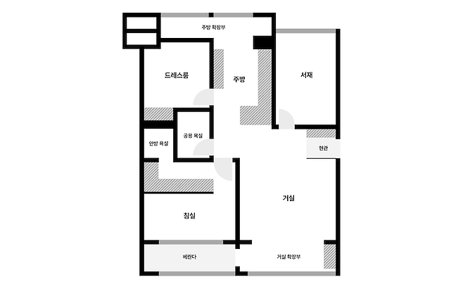 저희 집은 전형적인 90년대 2베이 아파트입니다. 인테리어쇼에서 절대로 사면 안된다고 했던, 주방 뒤로 베란다가 있는 구조에요. 이 때문에 레이아웃을 잡는데 어려움이 많았었습니다. 어떻게 바꿨는지 뒤에서 알려드릴게요.