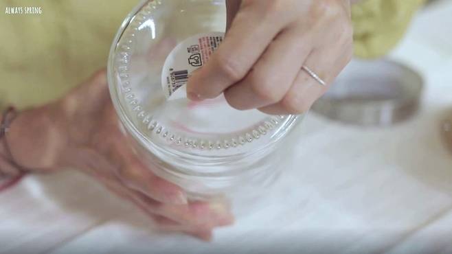 유리병 바닥에 붙은 스티커가 애먹이지 않고 잘 떨어지네요. 이럴 때 기분 참 좋죠 ^^