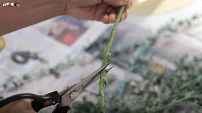 물이 꽃에 잘 올라올 수 있도록 줄기 끝을 사선으로 잘라주었어요. 꽃을 다듬은 후 남은 줄기나 잎은 일반 쓰레기로 버려야 한답니다.
