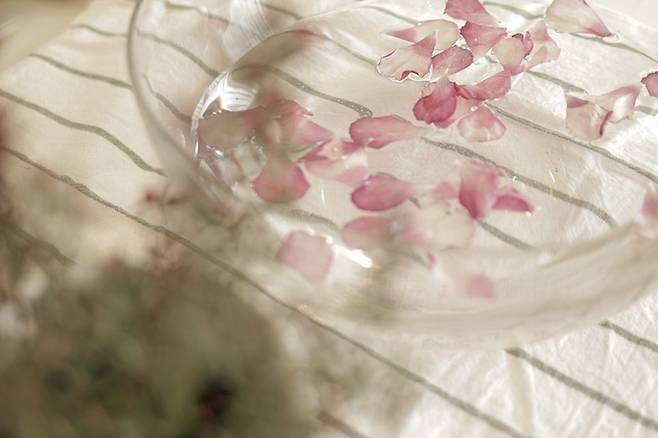 꽃을 다듬을 때 떨어진 꽃잎이 아까워 물에 띄워봤어요. 아~ 곱기도 해라