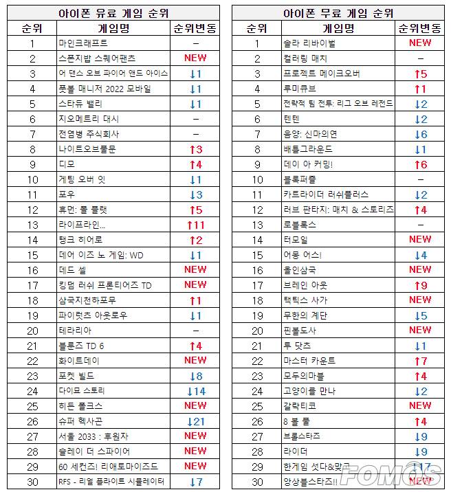 ■ 아이폰 게임 순위