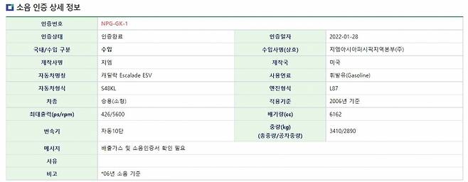 환경부에 따르면, 캐딜락코리아는 지난달 28일 에스컬레이드 ESV의 배출 및 소음 인증을 완료받았다. ESV는 에스컬레이드 기반의 롱휠베이스 모델로, 한층 여유로운 거주 공간과 적재 용량을 겸비한 모델이다.