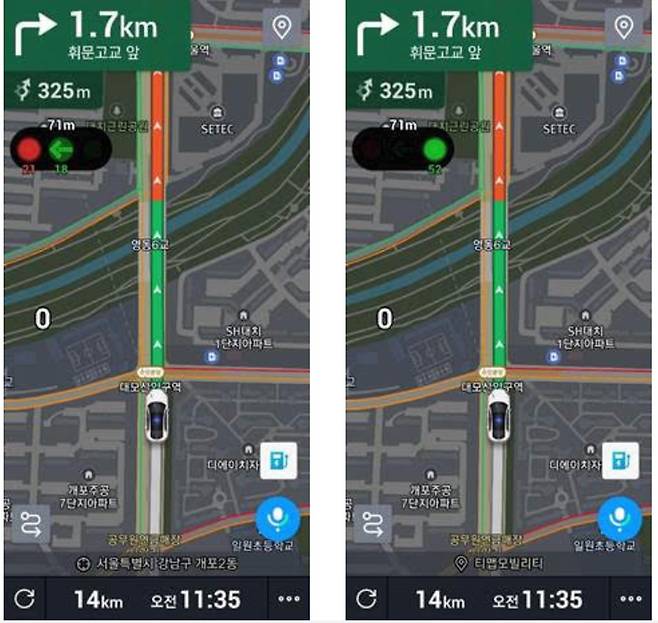 운전자들은 이 서비스를 통해 신호등에 점등 된 색상과 잔여 시간을 실시간으로 확인할 수 있다. 신호 정보는 사용자들의 과속 등을 방지하기 위해 잔여시간 5초 전까지만 제공된다.
