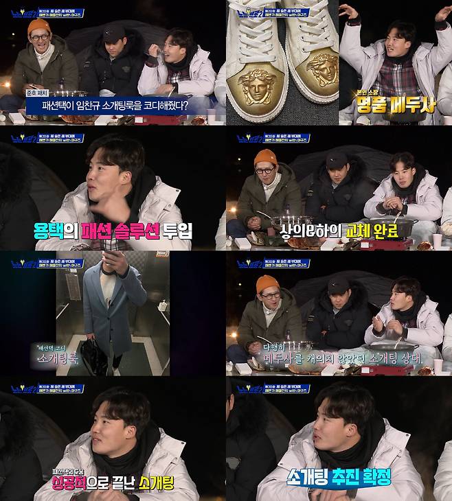 이날 임찬규는 선배 박용택의 코디 덕분에 소개팅에 성공했다고 밝혔다. 그는 "소개팅 나가게 됐다고 전화했더니 용택이 형이 '지금 현재 착장한 거 얘기해 봐'라고 해서 말했다"며 "근데 신발이 베르사체였는데 메두사가 크게 그려진 신발이었다. 진짜 뱀이 튀어나올 정도였다. 이걸 듣고 용택이 형이 다시 다 사라고 해서 티셔츠랑 바지는 바꿔 입었는데 신발은 내가 발이 300이라 안 맞아서 그냥 신고 갔다. 근데 그런 걸 상관 안 하는 사람이었다"고 말했다. 이에 박용택은 "상관 안 하는 거지 그걸 좋아하는 건 아니다"라고 돌직구를 날려 웃음을 자아냈다.