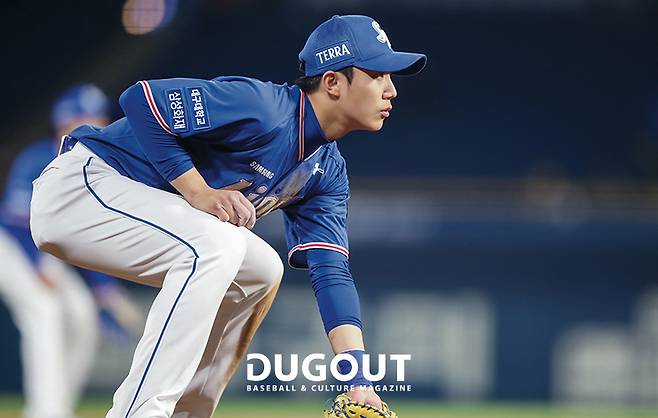 고등학교 때도 유격수를 해봐서 부담감이 그렇게 크진 않아요. 그래도 프로에서 접하는 타구들이 이전과는 전혀 다른 수준이고, 또 구장마다 공의 바운드도 차이가 있으니까 많이 연구해서 잔 실수를 줄여나가는 게 필요해요. (조동찬 수비 코치는 어떤 조언을 해줬나요?) 제가 아직 상대 타자 개개인이 어떤 유형인지 잘 모르니까, 타자주자가 빠른지 느린지 같은 부분을 사인을 통해 적극적으로 알려주세요. 그리고 수비 연습할 때 타구를 끝까지 잘 확인하라고 당부하세요. 스텝도 많이 알려주시고요.