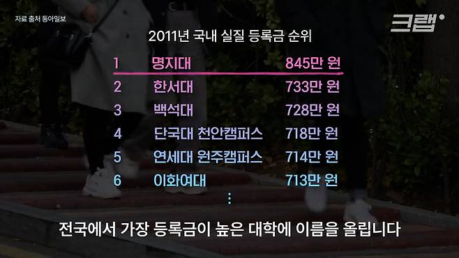 전국에서 가장 등록금이 높은 대학에 이름을 올리기도 합니다.