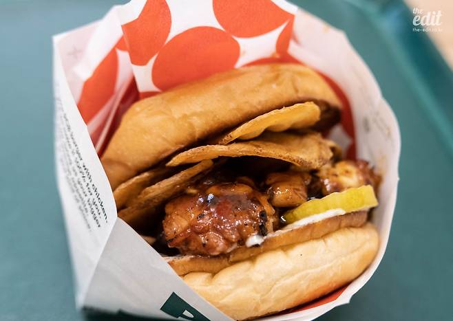 닭다리를 사용했다. 적당히 탄력 있고 기름지다. 비슷한 식감을 떠올려보자면, 닭꼬치와 닮은 것 같다. BBQ 소스가 매력적인데, 엄청 짜거나 달지 않고 자극적이지도 않지만 존재감은 확실하다. 특히 마음에 들었던 건 패티 위에 올라간 포테이토 칩이었다. 굉장히 바삭하게 튀겨서 BBQ 치킨과 함께 먹을 때 식감이 재미있었다. 내슈빌 핫치킨도, 소고기 패티가 들어가는 버거도 충분히 먹어봤다면 펄시티 버거의 BBQ 치킨을 추천한다.