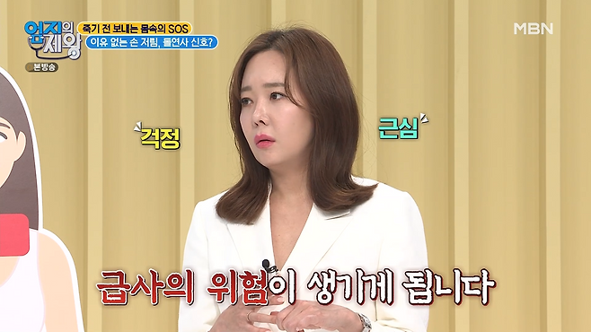 손이 자주 저려서 녹화 중에도 손을 주무르고 있던 에바씨는 근심걱정이 가득한데요