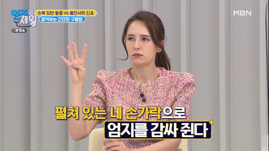 펼쳐 있는 네 손가락으로 엄지를 꼭 감싸 줍니다.