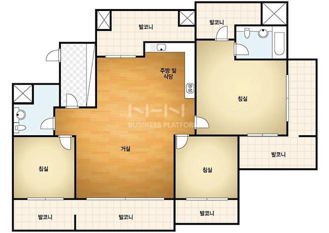 3. 광폭 발코니로 서비스 면적이 꽤 커 전체적인 면적이 넓다.