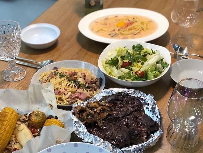 지인들도 초대하기도 하고, 식당에 온 것처럼 둘만의 저녁식사를 즐기기도 한답니다. 덕분에 한층 더 따뜻하고 행복한 식사시간을 보내고 있어요.