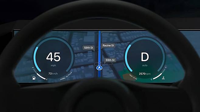 애플은 차세대 카플레이는 더 이상 센터패시아의 디스플레이 창만을 다루기를 원하지 않는다는 점을 강조했다. 차내 엔터테인먼트 시스템을 재창조하는 차원의 큰 계획이 있다는 것이다. 다시 말해 내비게이션, 팟캐스트 및 스트리밍 앱 디자인을 결정하는 것이 아니라 전체 인포테인먼트 시스템, 즉 자동차의 모든 디스플레이를 제공하겠다는 얘기이다.