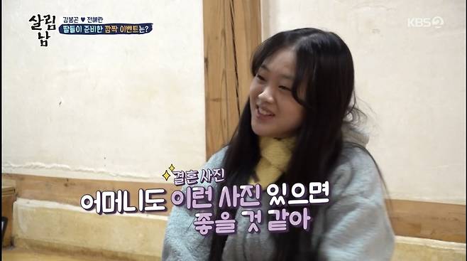 2월 12일 방송된 KBS 2TV 예능 프로그램 '살림하는 남자들2'에서는 부모님의 웨딩 촬영을 기획하는 세 자매 모습이 그려졌다.