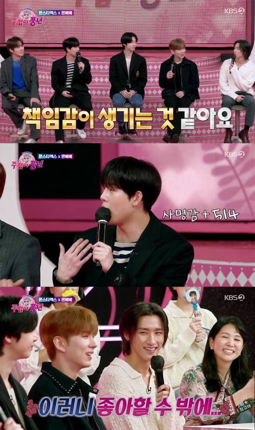 몬스타엑스 민혁, 기현, 형원, 주헌, 아이엠은 팬클럽 몬베베와 7일 오후 방송된 KBS2 '주접이 풍년'에 출연했다.