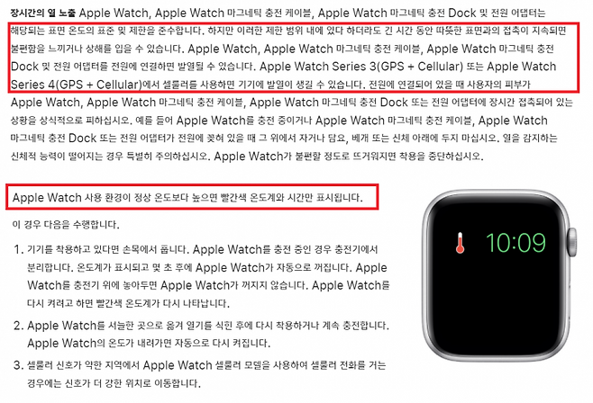 또 애플이 명시한 애플워치 사용 온도 범위는 -20°~45°C 사이다. 고열 상태가 지속될 경우 일부 기능의 중단을 통해 내부 온도가 조절되며, 사용 환경이 정상 온도보다 높으면 온도에 대한 경고가 표시된다. 애플이 '기기 문제가 아니'라고 주장할 수 있는 대목이다.
