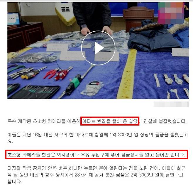 그리고 기존의 외시경이 있던 구멍 사이로 특수장비를 넣어 도어록을 해제하고 금품을 훔쳐 달아나는 범죄를 저질렀다고 하는데요.