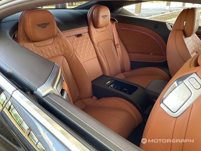 의외의 장점은 뒷좌석이다. 대개 2도어 쿠페의 뒷좌석은 너무나도 비좁아 마치 감옥과도 같다. 짧은 거리조차 성인이 탑승하기엔 부담스러운 자리다. 그러나 컨티넨탈 GT는 커다란 덩치에서 오는 장점을 뒷좌석 공간에 일부 할애했다. 4도어 세단과 비교할 수준은 아니지만, 왠만한 거리는 안락하게 이동할 수 있다. 열고 닫을 수 있는 쪽창의 존재는 신의 한수다. B필러가 없어 시원한 개방감을 선사할 뿐만 아니라, 2열 승객의 답답함도 크게 줄여준다. 벤틀리답게 뒷공간에도 최고급 가죽을 아낌없이 둘렀다.