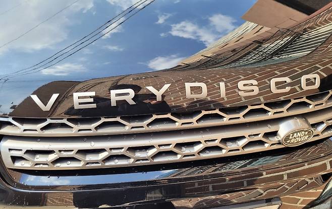 글쓴이에 따르면 같은 회사 과장은 DISCOVERY라는 브랜드 스펠링이 그릴 위 후드에 붙어있는 검은색 랜드로버 수리를 맡겼다.