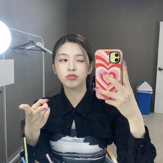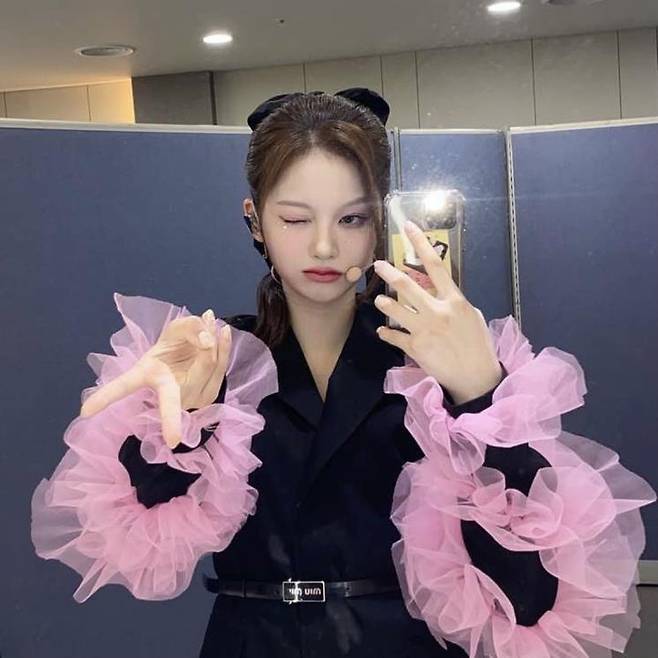 ‘갸루 피스’ 포즈를 애용하며 ‘레이 피스’라는 별명까지 생긴 아이브 레이. 그녀는 유니버스에서 팬들에게 갸루피스 하는 방법을 전수해주기도 했어요.