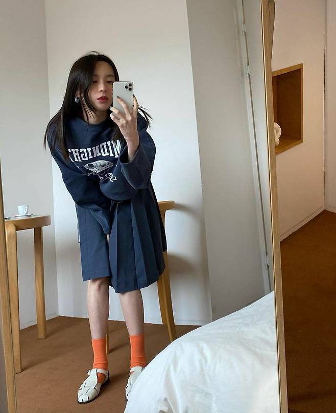 공개된 사진 속 그녀는 초록색 니트를 입고 연두색 양말로 패션 센스를 자랑했습니다. 또한 김수미는 가는 종아리와 날씬한 몸매, 뚜렷한 이목구비로 세련된 미모를 자랑했는데요.