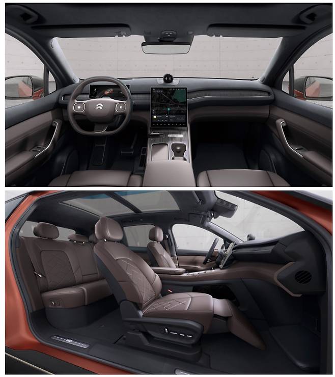 인테리어는 난방, 환기 및 마사지 기능을 채용해 두 번째 거실을 표방하고 있다. AR/VR 호환 디지털 콕핏 시스템인 파노시네마도 기본이다. 니오는 AR 장치 회사 NREAL과 공동으로 승객으로부터 6 미터 떨어진 곳에서 201 인치 스크린을 투사 할 수 있는 SUV 용 맞춤형 AR 안경을 개발했다.
