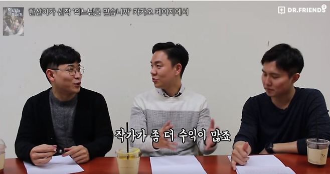 첫 연재는 ‘바둑광 박부장’이었습니다. 2010년부터 2011년까지 고료를 받고 정식으로 연재했죠. 병원을 열고는 만화를 그릴 시간이 없어 한동안 작가 활동을 할 수 없었다고 합니다. 병원을 닫고 페이닥터로 일하면서 시간이 생겨 ‘내과 박원장’으로 돌아온 것이죠. 처음엔 의사 생활과 병행했지만 지금은 웹툰 작가로서 자리를 잡아 전업 웹툰 작가로 활동하고 있습니다.
