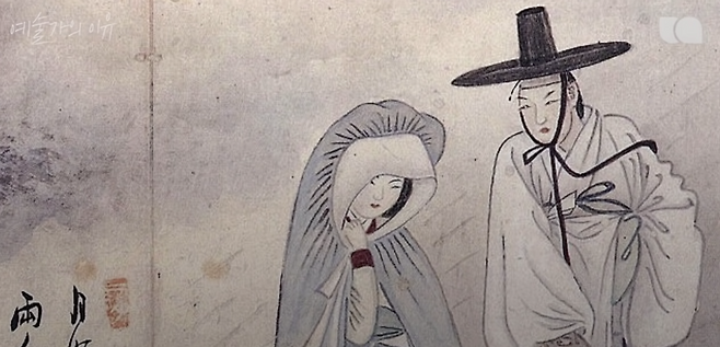 하얀 소복을 입은 왼쪽 여인은 과부입니다.