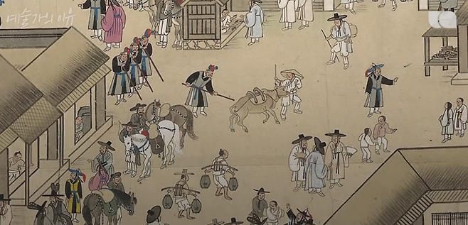 궁궐 밖 사람들의 삶을 자주 그렸다는 점이 대표적이죠.