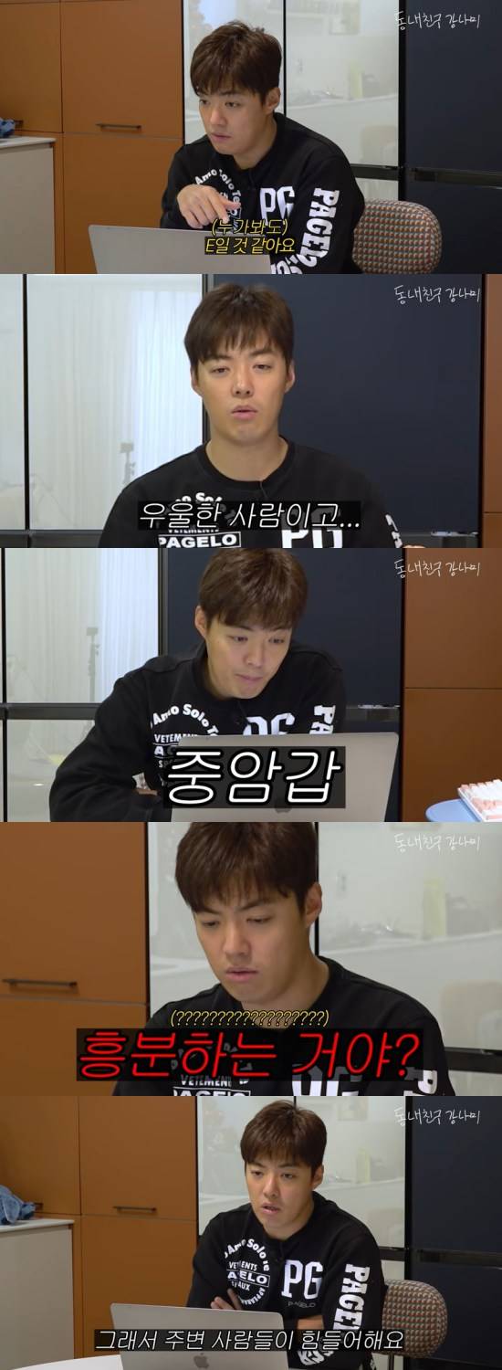 이에 강남은 "이렇게 밝은데 사실은 우울한 사람이고 슬픈 사람이고 이렇게 나오는 거 아니냐"라며 "내 이미지가 집에 혼자 있어도 말을 많이 할 것 같은 이미지라더라. 그저께 집에 혼자 있었는데 계속 천장만 보고 있었다. TV도 안 봤다. '내가 우울한 사람인가?' 하는 생각도 했다"라고 털어놨다.