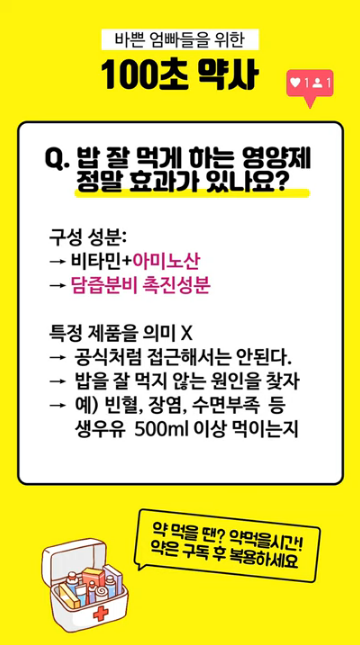 그런데 우리 아이가 밥을 잘 안 먹으면, 무슨무슨 영양제가 유명하다던데 한 번 먹여볼까 하는 생각이 들 수도 있는데요.