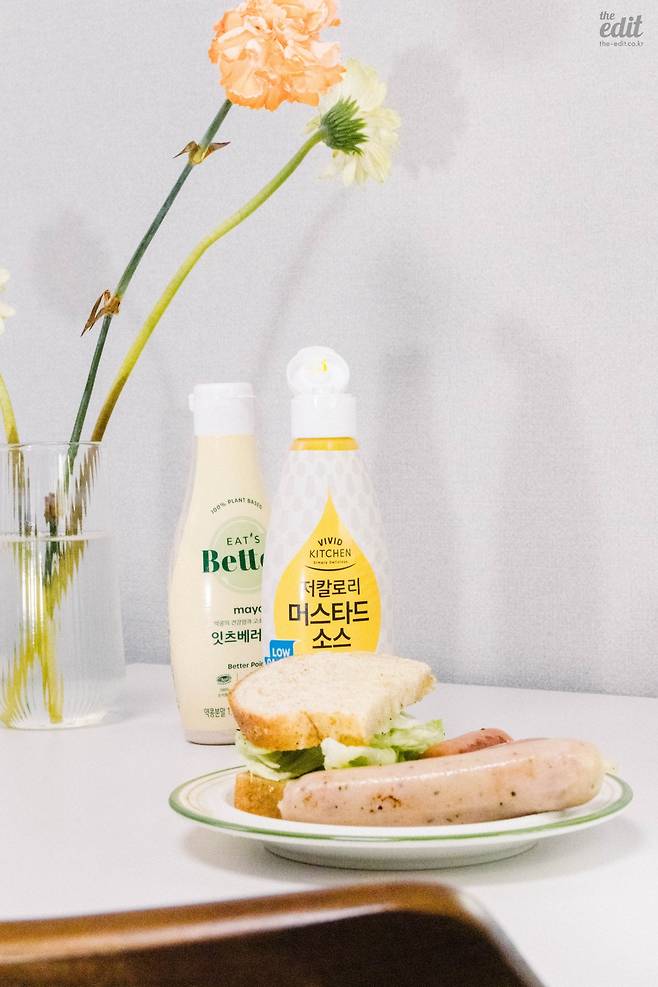 작년과 몸무게를 비교해보니 10kg 정도 차이가 난다. 살이 빠졌다. 갑작스럽게 빠진 건 아니고 한 달에 1~2kg씩 서서히 빠졌다. 작년과 비교했을 때 크게 달라진 식습관은 별다른 약속이 없을 때 샌드위치로 끼니를 해결하는 거다. 다이어트를 위한 샌드위치를 만들 때 가장 중요한 건 소스다. 설탕 대신에 대체 감미료인 알룰로스가 사용된 소스를 구매하거나, 칼로리, 지방, 나트륨 함량이 낮은 소스를 구비하는 게 중요하다. 다이어터라면 0kcal로 유명한 스리라차 소스는 대부분 알고 있을 테니 비비드 키친의 ‘저칼로리 머스타드 소스’와 ‘잇츠 베러 마요’를 소개하겠다.