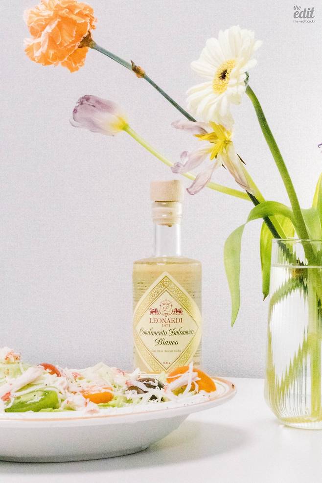 마켓컬리에 오랜 시간 입고가 되지 않아 해외 직구로 구매한 적도 있다. 여름이 제철인 오이나 토마토와 잘 어울려서 적어도 6월엔 꼭 구비한다. 채소 위에 화이트 발사믹과 후추, 약간의 레몬즙을 뿌리면 끝. 너무 시지도 않고, 단맛이 은은하게 맴돌아 별다른 드레싱이 없어도 상큼하니 맛있다. 여기에 올리브 오일, 다진 마늘과 잘게 썬 양파를 넣고 두부면을 넣어주면 다이어트식으로 훌륭한 한 끼가 완성된다.