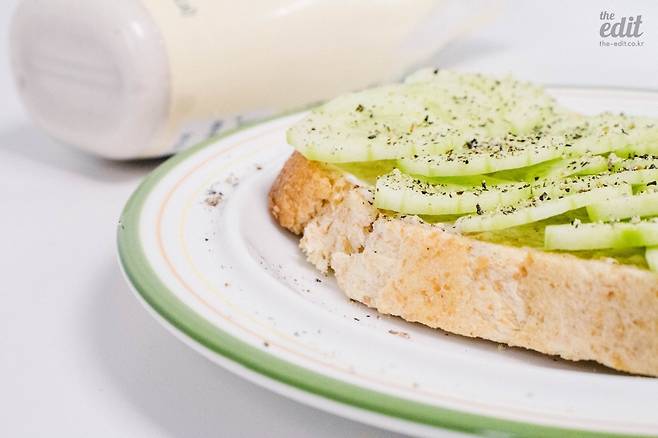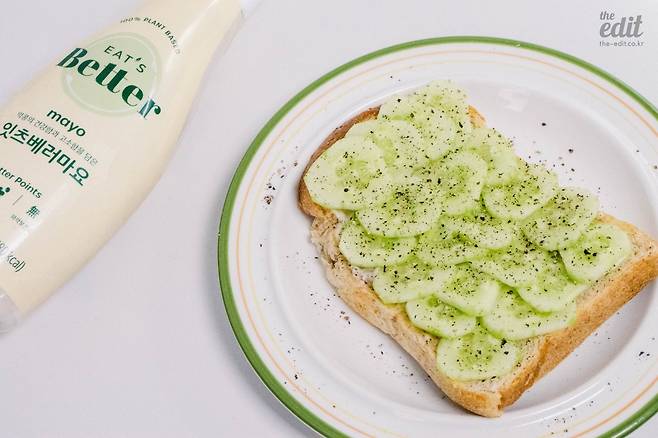 오이를 싫어하는 사람이라면 괴식이라 생각할 수 있지만, 오이를 사랑하는 사람으로서 오이 샌드위치 레시피를 몇 년째 밀고 있다. 치아바타나 호밀 빵 위에 ‘잇츠 베러 마요’를 뿌리고 오이를 가득 올린다. 취향껏 후추와 바질 페스토를 얹으면 손쉽게 완성된다. 담백하다고 말할 수 있을 정도로 일반 마요네즈에 비해 느끼함이 적다. 샌드위치를 만들기 위한 마요네즈로 제격이다. 맛살을 잘게 찢은 뒤, 마요네즈에 버무려 먹어도 맛있다.